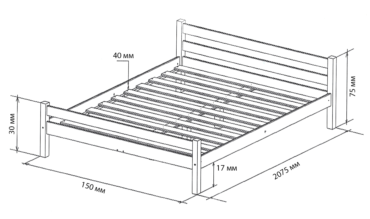 За этими принципами сделали всегда актуальную размерную сетку кроватей, со следующими параметрами: