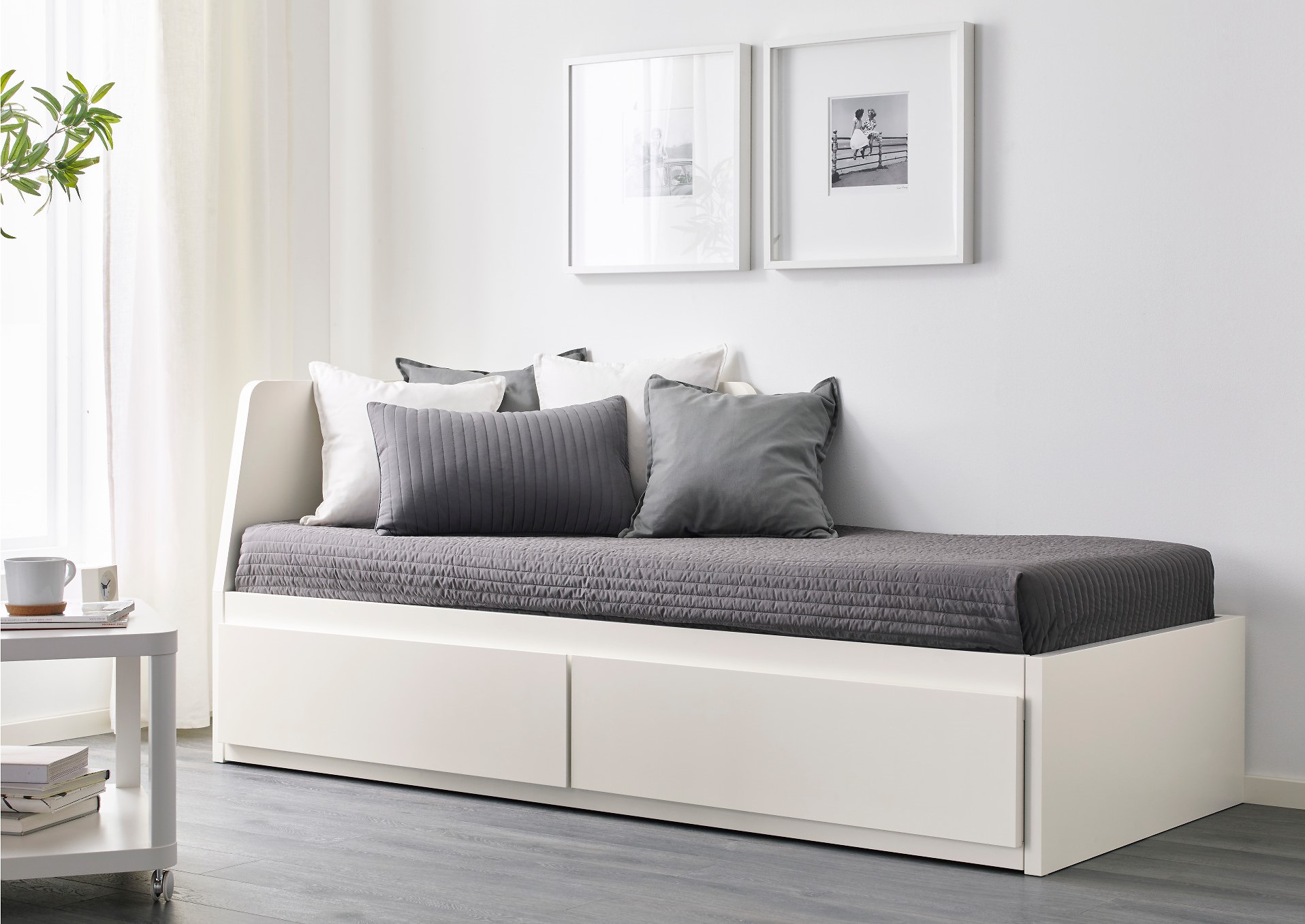 Для экономии пространства в спальне можно выбрать полутораспальную кровать, обычно её ширина 140 см, что сравнимо с самой маленькой 2-х спальной. Главный минус — на спальном месте шириной в 140 см вдвоём спать будет некомфортно, придётся постоянно тесниться.