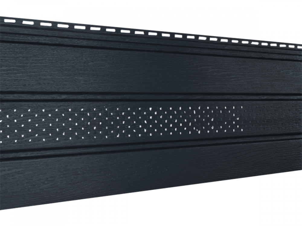 Софит перфорированный имеет по всей площади панели отверстия, через которые хорошо проходит воздух. Такие доборные элементы предназначены для подшивки мансардной кровли с толстым пирогом утеплителя. Панели с отверстиями обеспечивают высокую интенсивность воздухообмена, своевременно удаляя из теплоизоляции конденсат. Это увеличивает срок службы каменной или минеральной ваты, не позволяет увеличить коэффициент теплопроводности. Отверстия перфорации небольшие, птицы или насекомые не смогут проникнуть в структуру кровли.