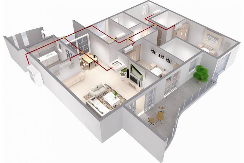 Если сделать трассу короткой не получается, коммуникации можно скрыть в стене, либо аккуратно проложить в пластиковом коробе.
