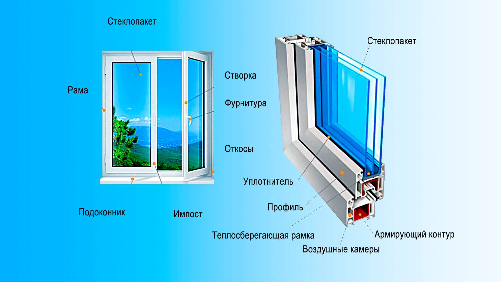 - створка (открывающаяся) и рама (коробка) из ПВХ-профиля;