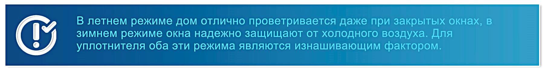В летнем режиме уплотнитель постоянно пропускает воздух, слишком расслабляется, что тоже не всегда хорошо для его структуры. Зато дом отлично вентилируется при закрытых окнах.