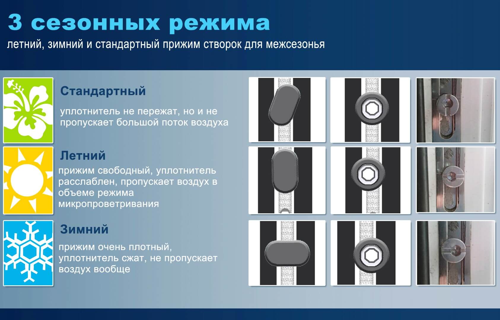 Данная оконная фурнитура, в большинстве случаев, имеет возможность перевода на летний или зимний режимы.