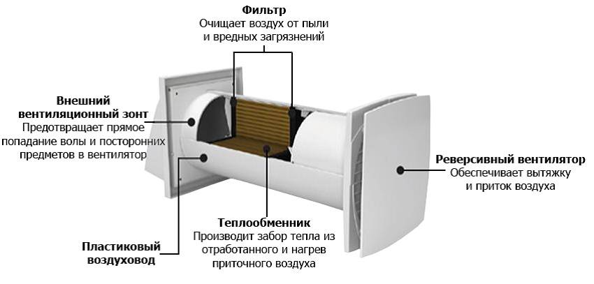 Эта модель – локальная вентиляция с рекуператором в частном доме. Об ее использовании стоит задуматься. Компактные модели можно установить в стенах разных комнат. Они функционируют обособленно, поэтому не требуют подключения к централизованной установке, осуществляющей настройку и контроль работы всех устройств.