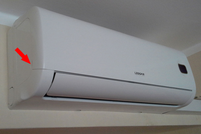 Далее со стороны блока управления или просто индикации расположен ионизатор, если кондиционер им в принципе снабжен. Ионизатор закрепляется непосредственно на радиаторе и состоит из опоры и собственно самого ионизатора. Последний имеет ручку, за которую следует аккуратно потянуть, ионизатор выйдет по краям из пазов и легко покинет свое гнездо.