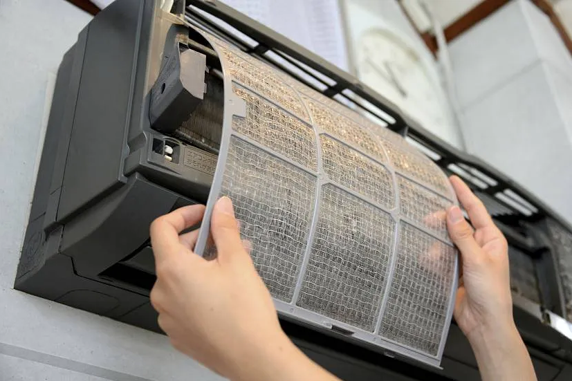 - Домашний кондиционер отключают от сети и снимают защитный фильтр внутреннего блока.
