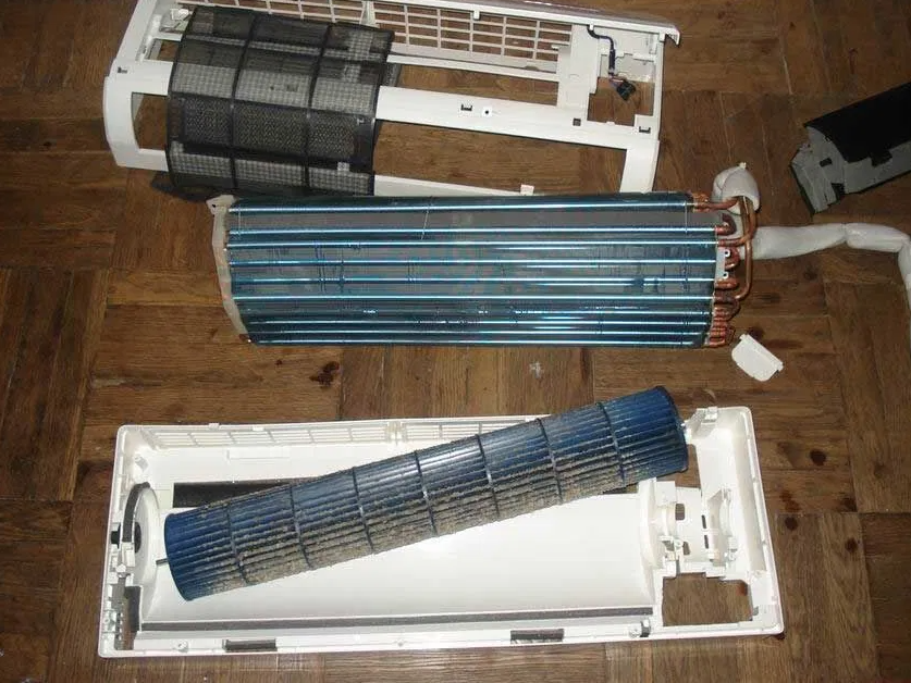 В большинстве моделей теплообменник и радиатор монтируются во внутреннем блоке. Для качественной очистки рекомендуется демонтировать и разобрать блок, после чего приступать к очистительным работам.