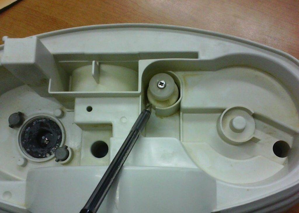 - Для получения доступа к внутренностям устройства откручиваются несколько саморезов. Они могут быть скрыты под резиновыми ножками. В редких случаях корпус бывает снабжен защелками, которые удерживают его части. Для их поиска нужно воспользоваться тонким лезвием: ведя им по линии соприкосновения, можно найти место крепежа, на которое следует нажать.