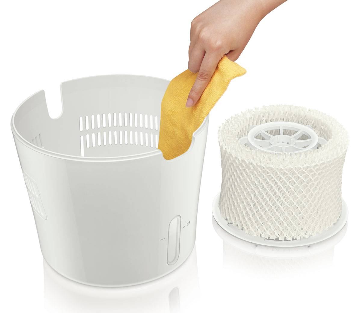 Не пытайтесь промывать фильтр для увлажнителя, так как при чистке фильтра может повредиться материал, похожий на бумагу, и потенциально удалить антимикробное покрытие. Лучше заменить фильтр на новый.
