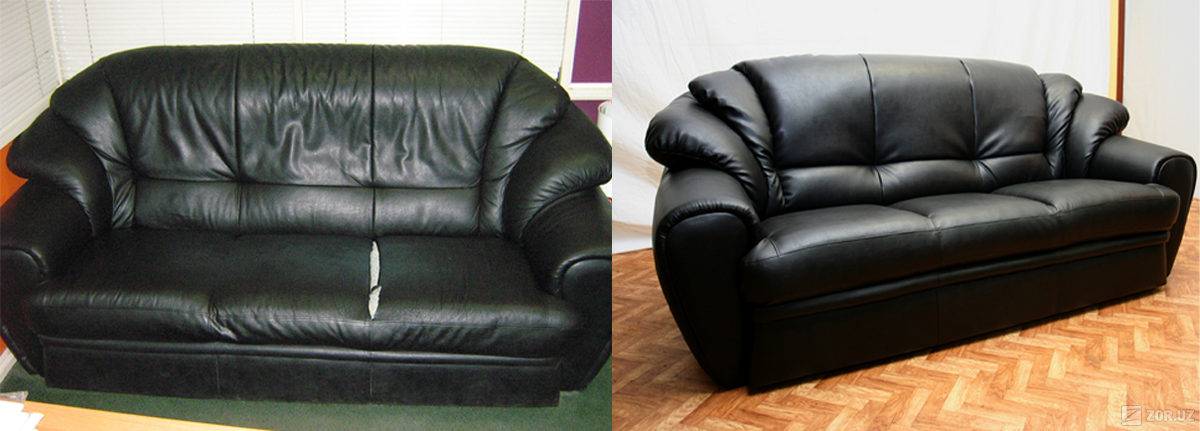 Преображение кожаного дивана после реставрации специалистами