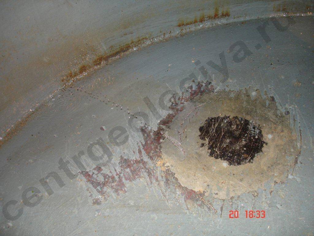 Сложный вид поломки – когда в ходе длительной эксплуатации на дне кессона появляются микротрещины, из-за которых оно может стать похожим на решето.