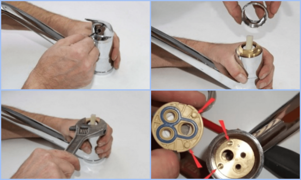 Рассмотрим подробно, как заменить картридж в смесителе на кухне, чтобы вы могли сделать это самостоятельно. Работы выполняются в следующей последовательности: