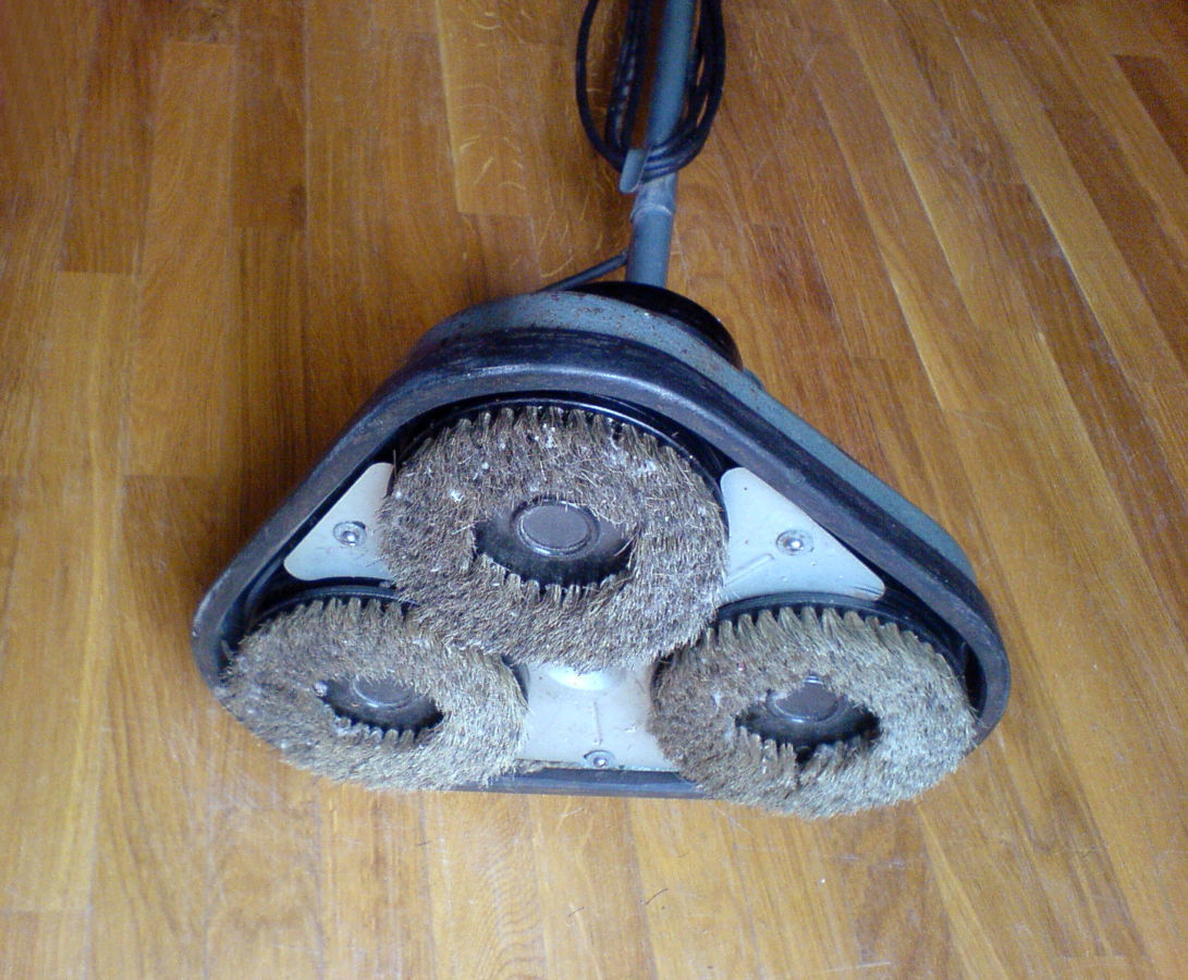 - с помощью специальной щетки или полотера (при наличии), используя мастику, проводят натирание пола до равномерного блеска, такого же эффекта можно достичь, обрабатывая поверхность вручную специальными приспособлениями, рабочая часть которых покрыта мягкой тканью.