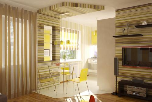 - если квартира имеет одну комнату, то ее можно разделить на несколько частей, а именно для детской зоны, для приема гостей и для отдыха. Для разделения используют ширмы или мебель;