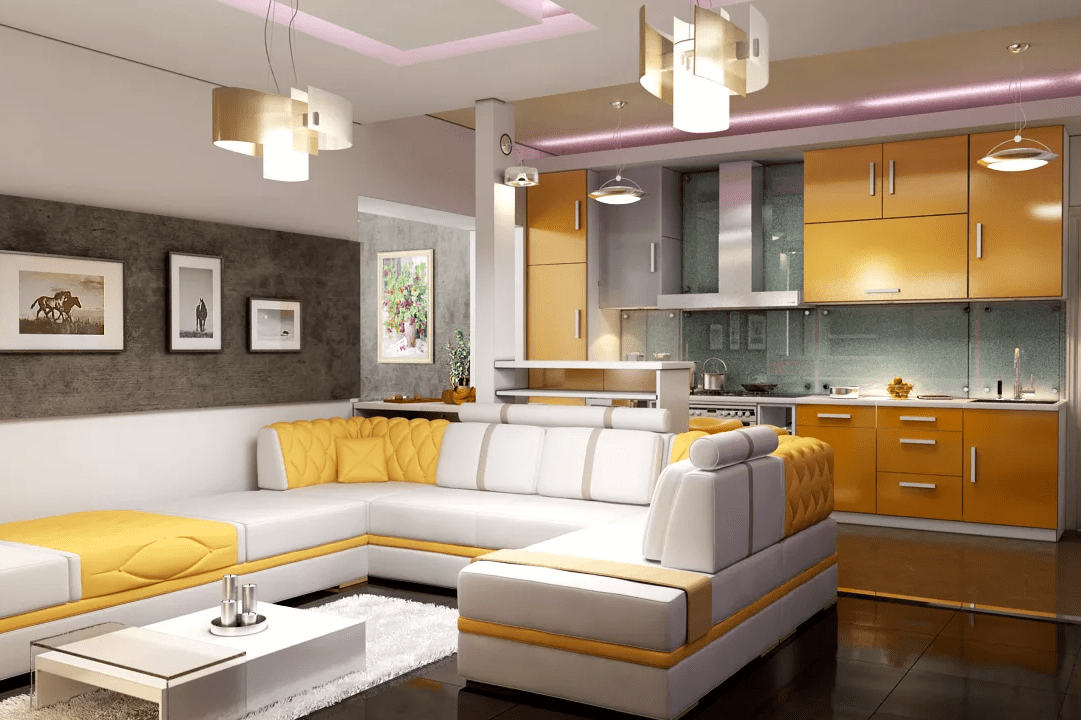 Если гостиная сравнительно небольшая, и рядом с ней располагается кухня, большинство потребителей принимают решение объединить оба этих помещения. Это очень удобный подход, поскольку можно создать комфортное пространство, как на кухне, так и в гостиной, а также выделить обеденную зону. Но перед тем, как перейти к оформлению пространства, необходимо изучить следующие особенности: