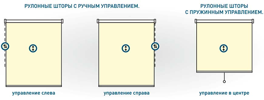 При монтаже рулонных штор следует учитывать, что движение полотна управляется в основном цепочкой, которая может быть расположена, как с правой, так и с левой стороны относительно кромки полотна. Поэтому рекомендуется выбирать конструкцию, управляющая цепочка у которой будет расположена в противоположной от ручки окна стороне. В этом случае не будет возникать неудобств при эксплуатации.
