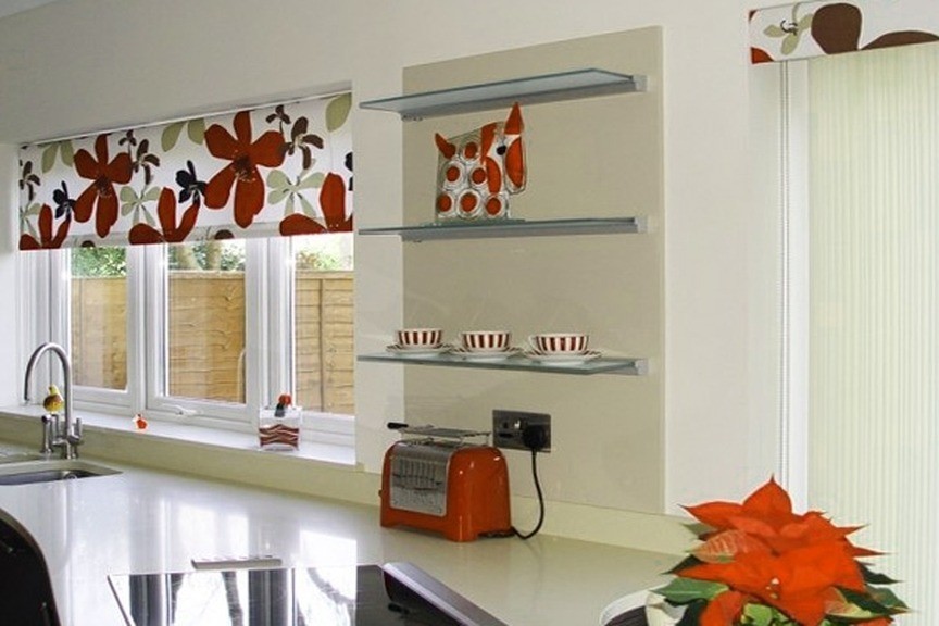 Когда душа поет и хочется ярких красок, то прекрасным вариантом станут рольшторы из ткани с каким-нибудь диковинным рисунком, например, с крупными цветами, замысловатыми узорами, геометрическим орнаментом. И конечно, не стоит забывать о ярких расцветках, которые добавят вашей кухне жизнерадостности и придадут современный вид