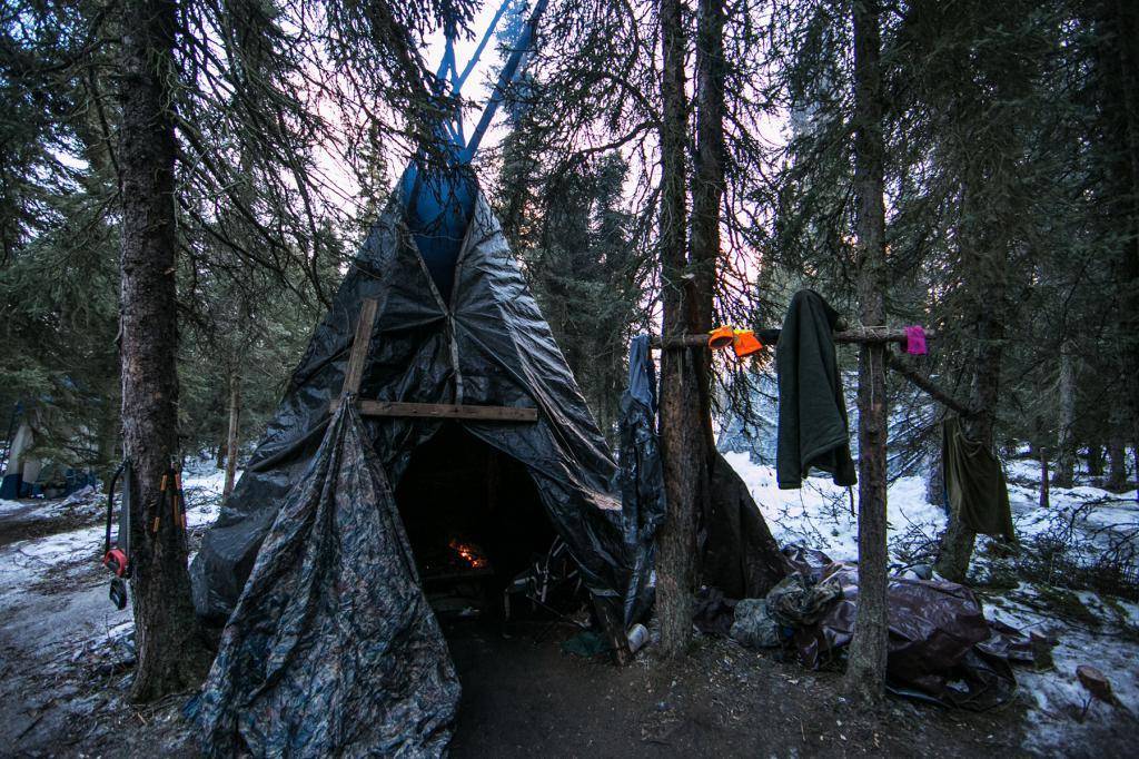 При необходимости сделать шалаш в горном лесу, нужно выбрать укрытие приставного типа, одна или две стороны которого будут из дерева или частями скалы. Установка производится таким образом, чтобы вход смотрел в противоположную вершине сторону. По периметру самодельной палатки нужно выкопать углубления для стока дождевой воды.