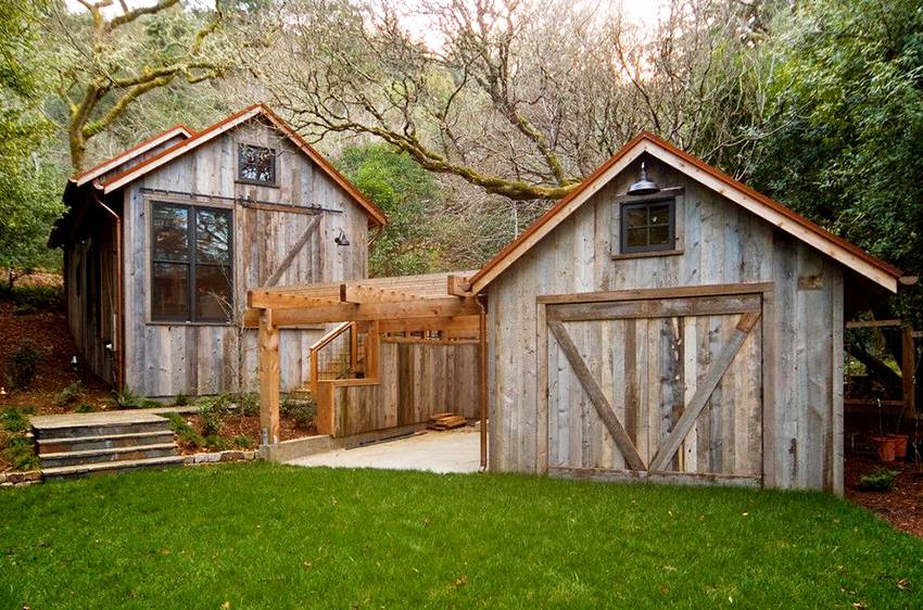 Самым бюджетным вариантом является горбыль (необработанные доски) или доска, снятая с разобранного поддона. Также в качестве альтернативных вариантов рассматривают шифер, СИП-панель, сендвич-блоки, поликарбонат и многое другое. Готовую конструкцию советуют покрывать краской для большей сохранности самого дерева. Но следует учитывать, что подкрашивать сарай придется постоянно, облупившаяся краска красоты не добавляет.