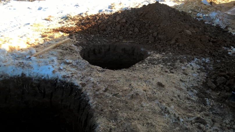 Еще один момент – глубина ямы. При устройстве нижние кольца должны располагаться в грунте ниже уровня его промерзания. Копать глубокий котлован вручную сложно, долго и небезопасно. Его стенки могут и осыпаться.