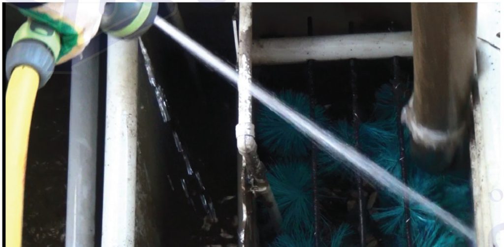 Один раз в 2 — 3 года промойте струей воды ершовую загрузку (эту операцию рекомендуется проводить, если ершики сильно загрязнились).