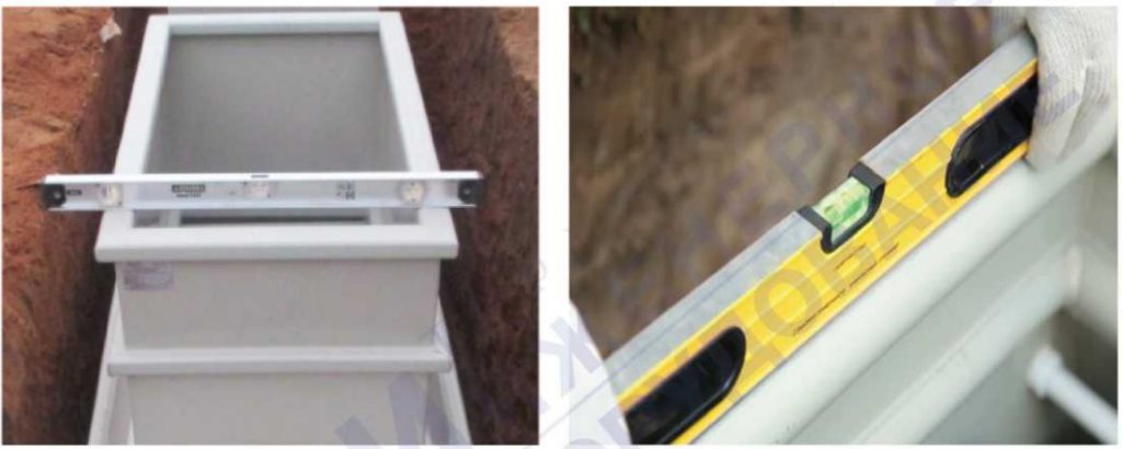 Заполнять септик ТВЕРЬ водопроводной водой до уровня водосливов, одновременно засыпая корпус песком до уровня крышки, с контролем его горизонтального положения в продольном и поперечном направлении. Крышки установки должны быть выше отметки планировки грунта на 100 мм во избежание подтопления поверхностными водами.