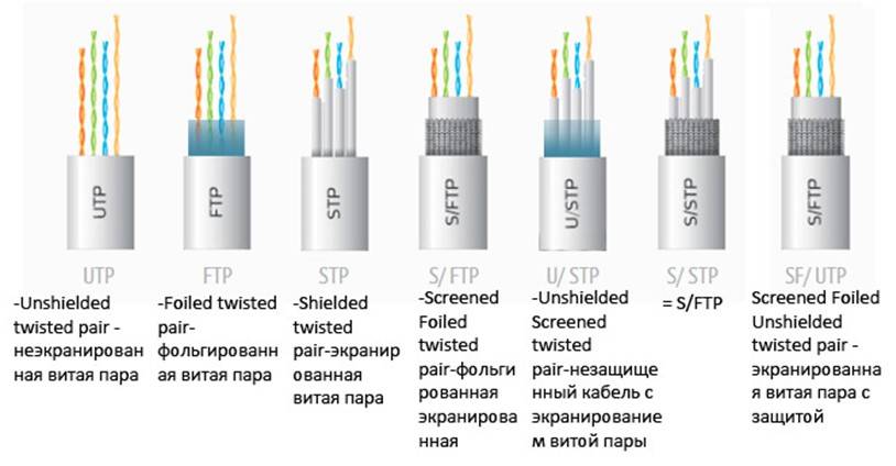 FTP – лишены экранирования, внешний экран присутствует (фольга). Применяются такие провода в офисных помещениях, где встречаются наводки и без потери скорости данные передаются на расстояние до 100 м.