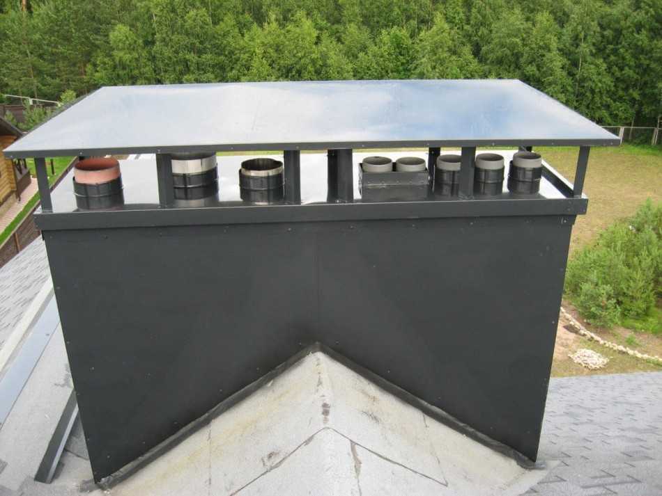 Воздуховоды, где из-за разности давления и температуры внутри помещения и снаружи возникает воздушная тяга, проходят через чердачное помещение и кровлю, оканчиваясь оголовками специальной конструкции.