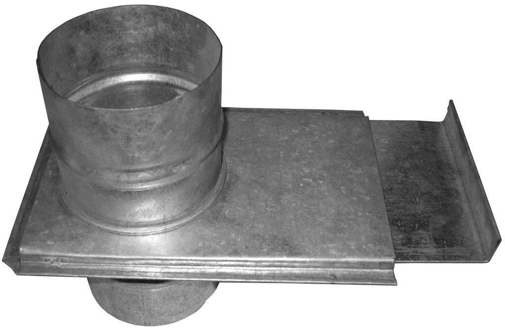 Поворотный шибер – это металлическая пластина с приваренной по центру направляющей. Устанавливается внутри дымохода, при этом конец направляющей обязательно выводится наружу. Регулировка тяги осуществляется путем вращения пластины вокруг своей оси. Такая конструкция менее надежна, поскольку со временем сварочное крепление ослабевает и заслонка отрывается. Поворотный шибер применяют в стальных дымоходах.