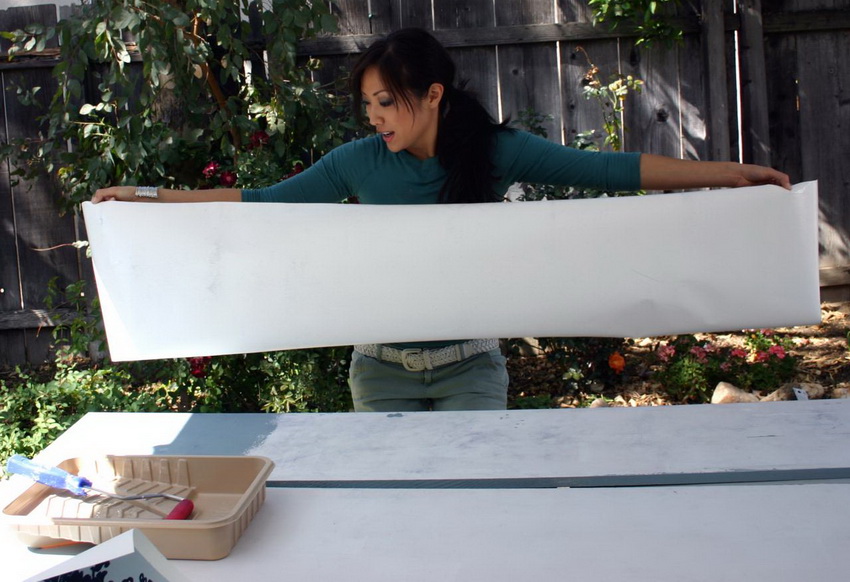 После завершения подготовки поверхности будущей ширмы для дома, окрашиваем дерево понравившейся краской.