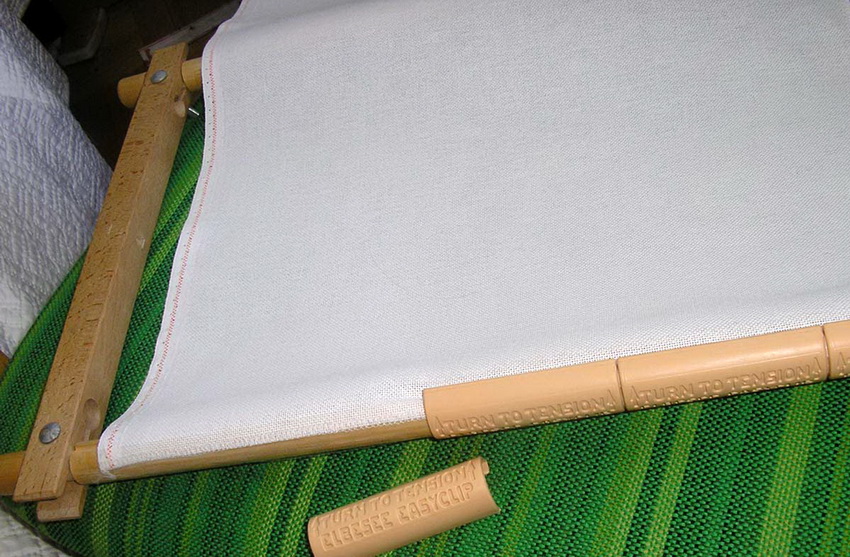 Каждый лист покрывают тонким слоем клея ПВА и приклеивают к полотнам. При выполнении этой процедуры нужно следить, чтобы клей не вытекал на ткань. После этого дают клею полностью высохнуть. Подготовленной тканью заполняют секции ширмы. С помощью степлера к одной из сторон рамы крепят полотно, а затем, натягивая ткань, фиксируют ее к остальным элементам рамы. Рекомендуемое расстояние между скобами составляет 4-5 см.