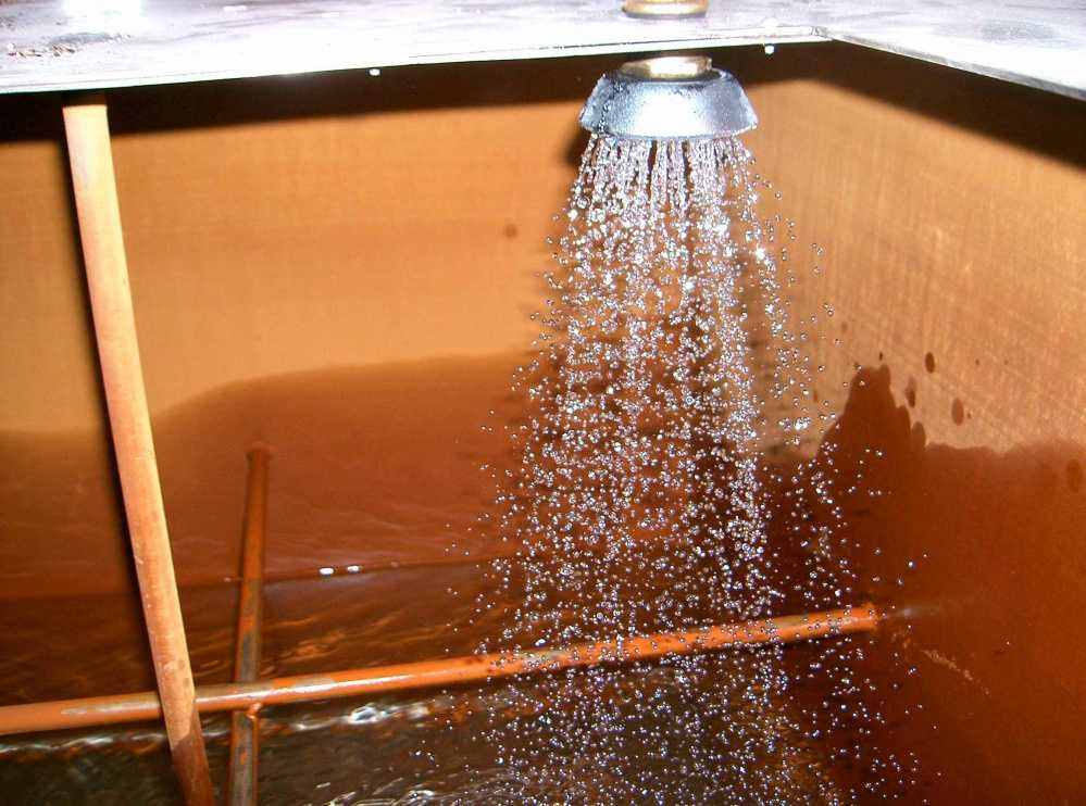 - Аэрация: справляется с большими объемами жидкости, одинаково эффективна для горячей и холодной воды. Требует постоянного расхода энергии, затратна в установке.
