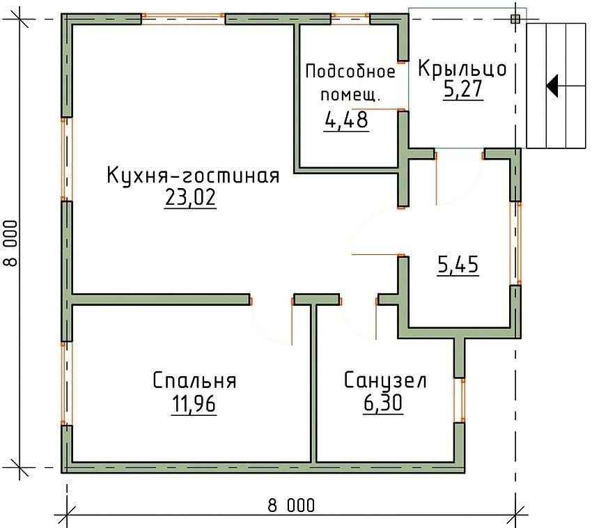 | Тамбур | 5,45 | Три, Ю, В, З | Входная | Одно, стеклопакет, 1000х1500 мм | Не отапливается |