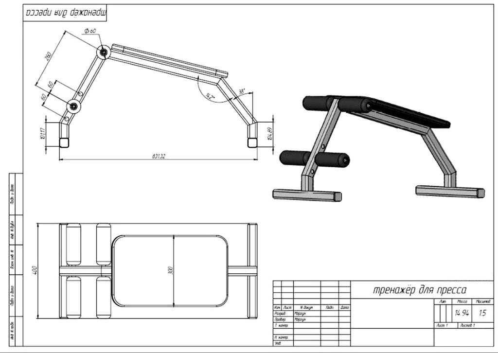 5. Скамья для жима лежа (чертежи – 1шт)