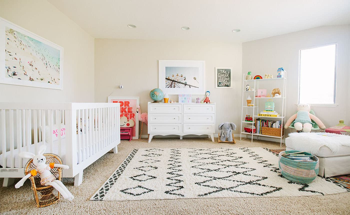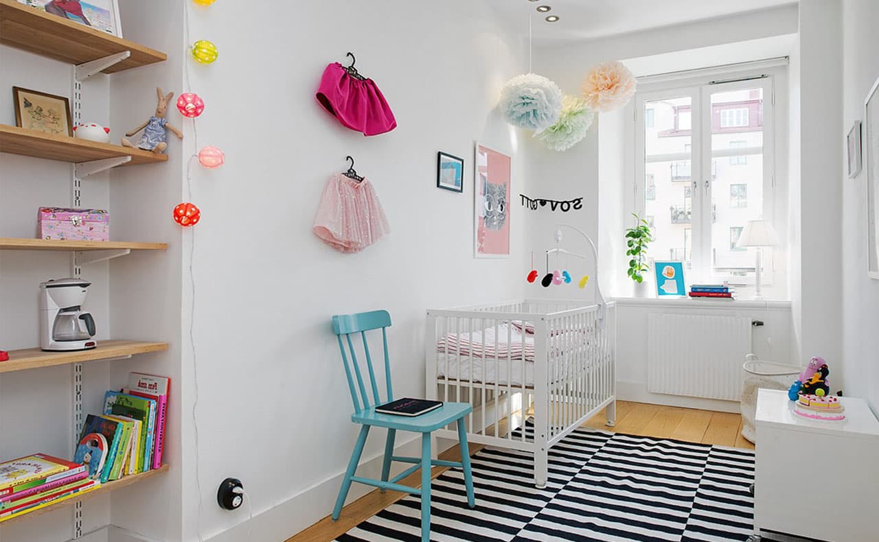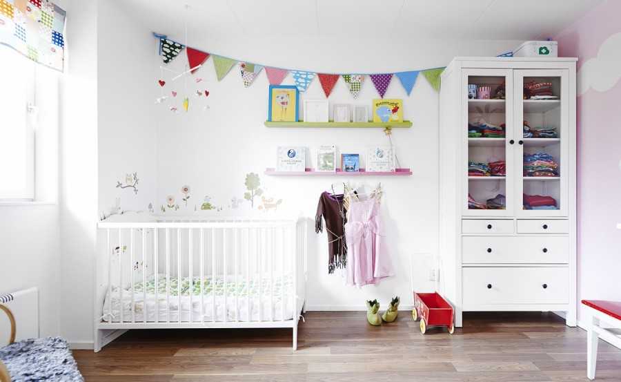 Не бойтесь использовать для детской яркие аксессуары – игрушки, декоративные виниловые наклейки, цветные теплые коврики.