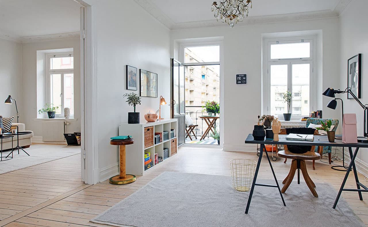 Благодаря удачному визуальному эффекту расширения пространства скандинавский интерьер – это удачное решение для небольших квартир. Оформить в нем можно любую комнату в доме, будь то ванная, кухня или спальня. Подойдет он также и для больших и светлых квартир-студий.