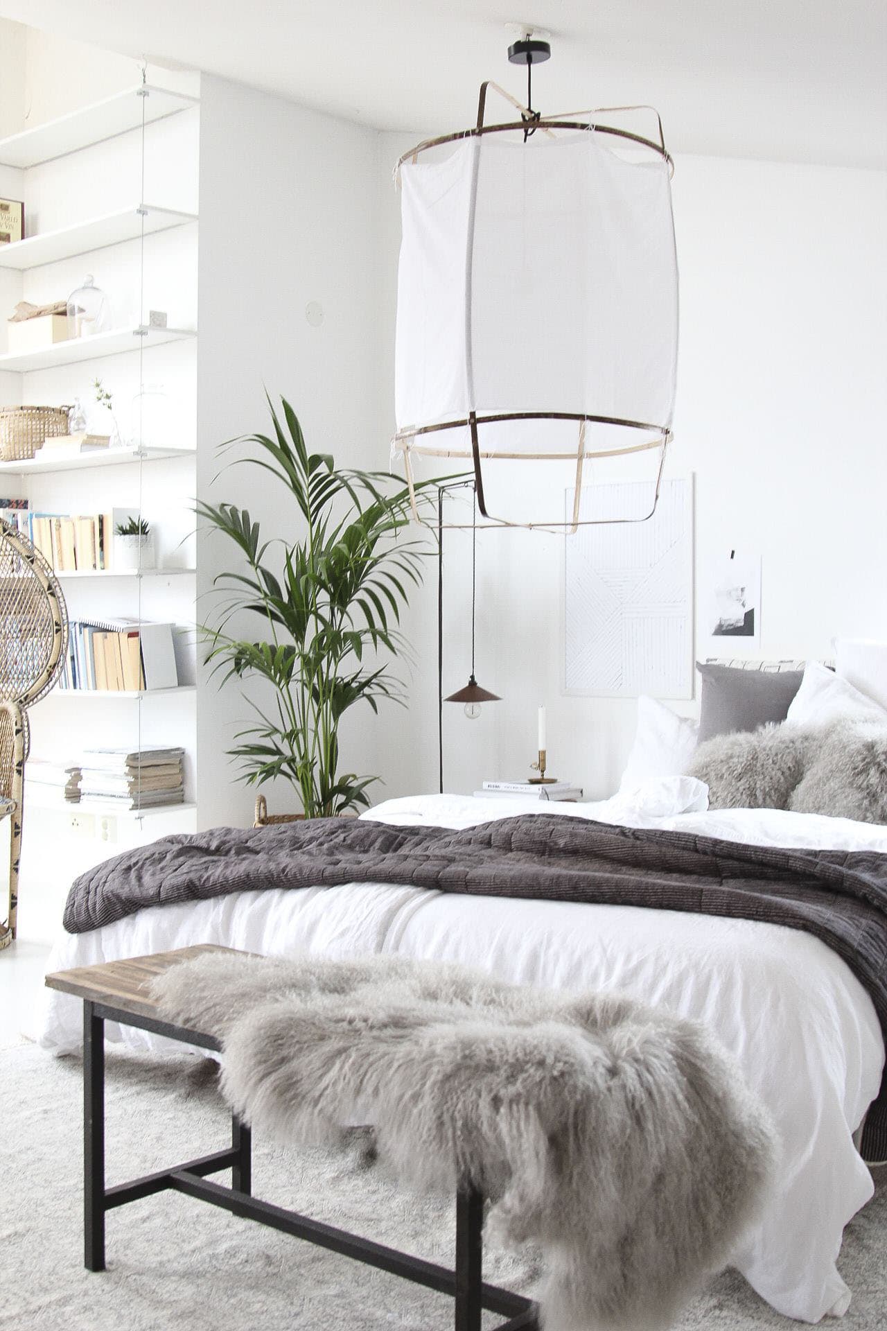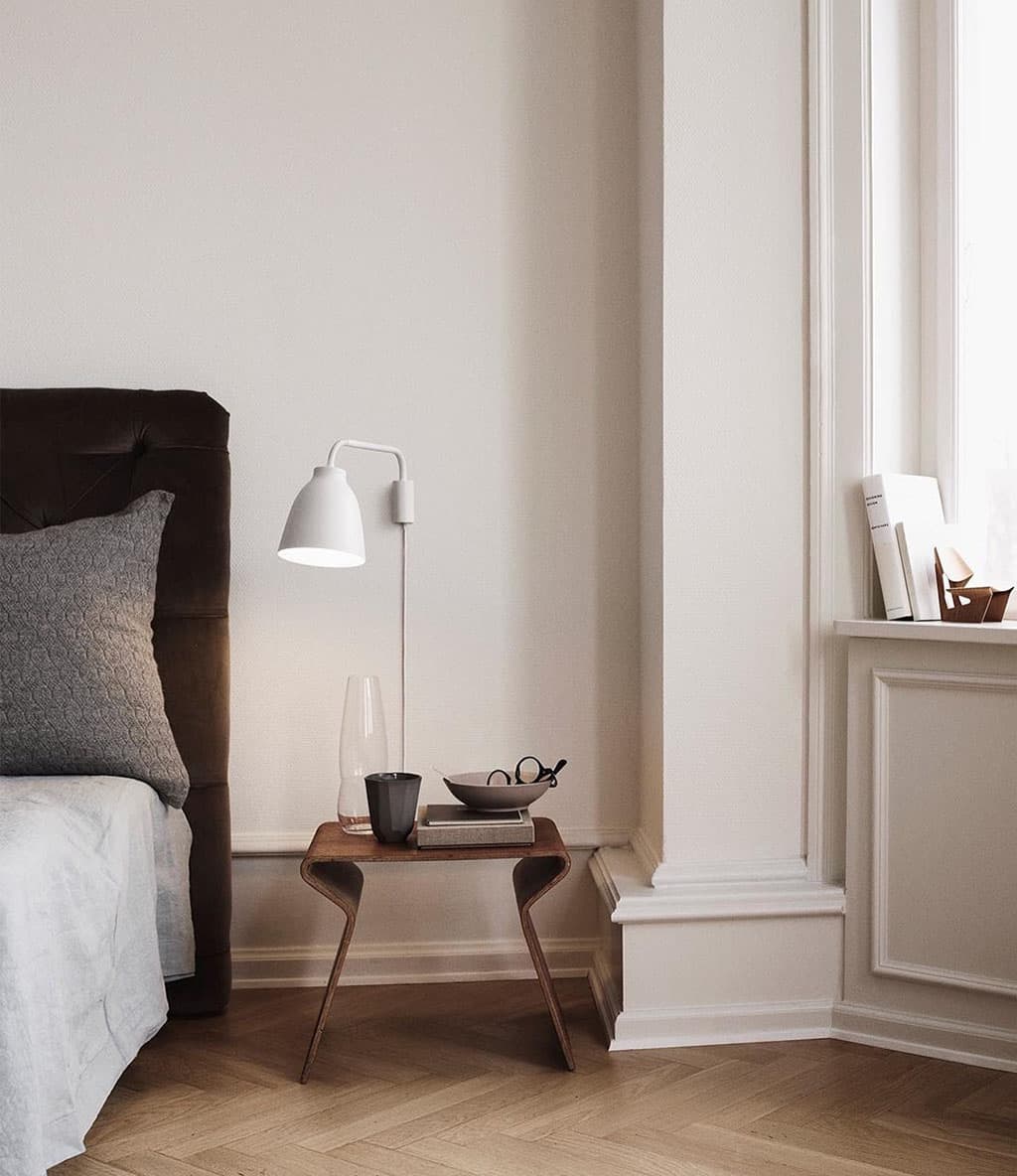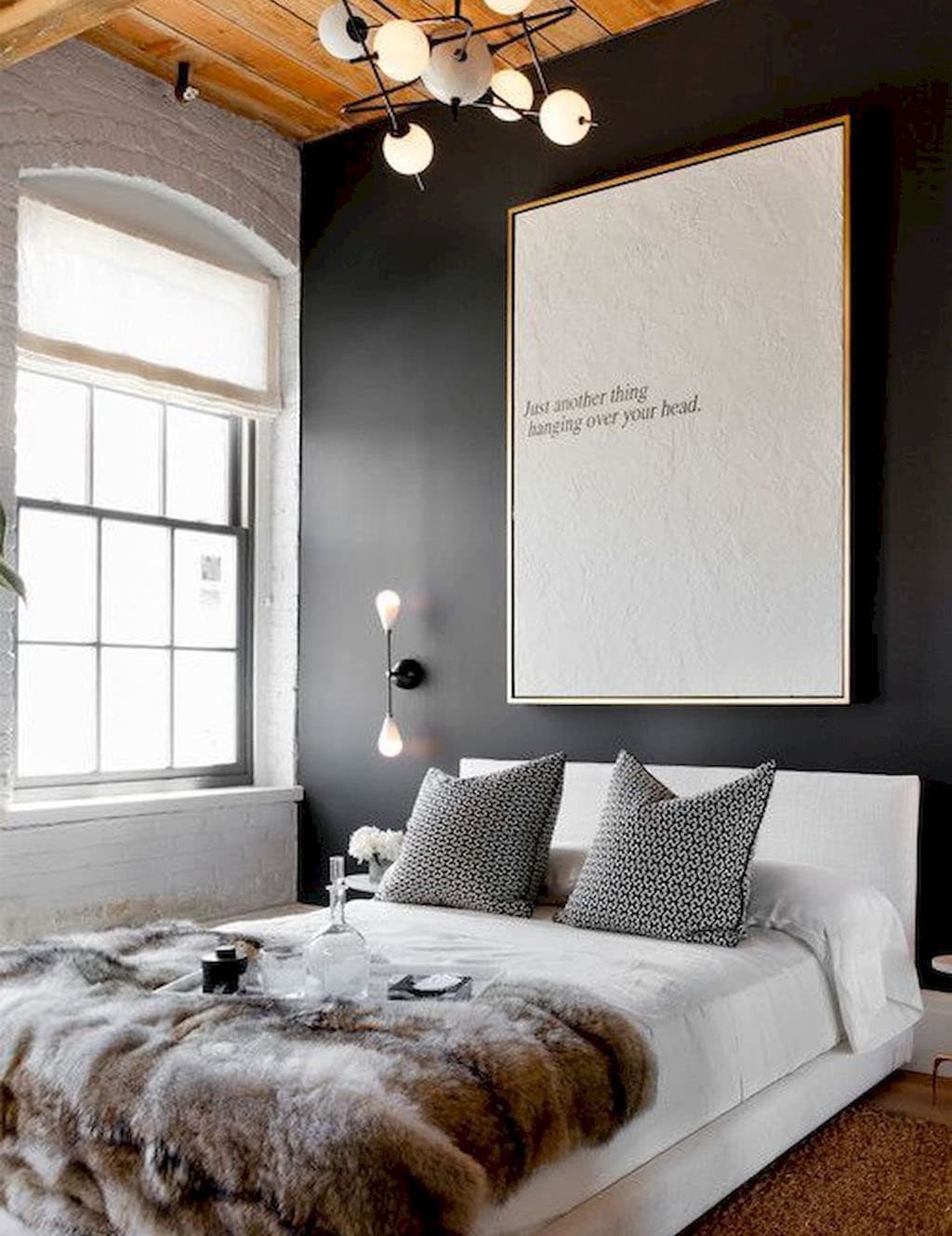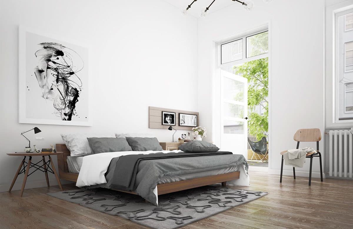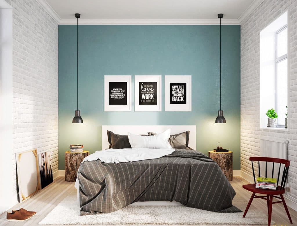 Одну из стен в скандинавской спальне можно сделать акцентной.
