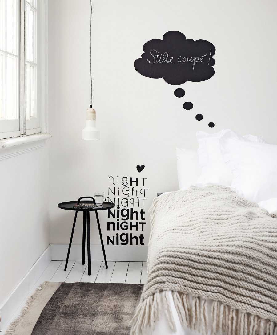 Для оформления детской хорошо подойдут набирающие популярность меловые обои. Наклейте их на одну из стен и порадуйте малыша возможностью разукрашивать собственную комнату так, как нравится именно ему. Рисунок легко стирается, а при желании его можно зафиксировать, покрыв прозрачным лаком.