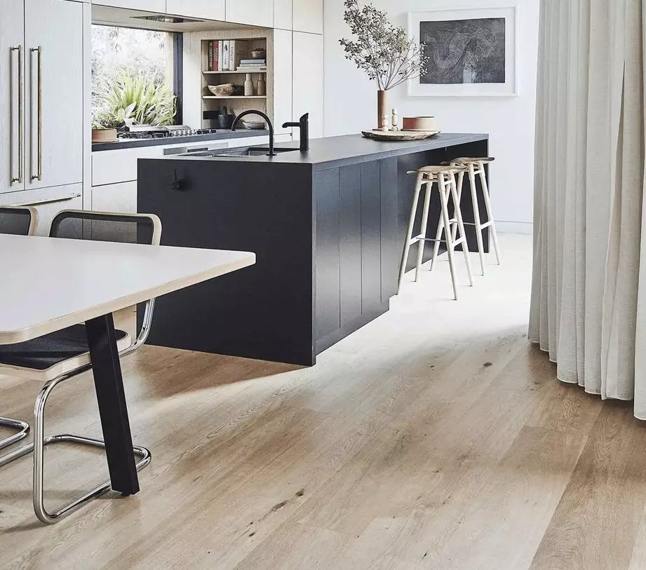 Выбирая напольное покрытие, следует отдавать предпочтение натуральной древесине. Пол также должен быть светлым. Это может быть ель, ясень или дуб. Хорошим вариантом будет эффект искусственного состаривания.