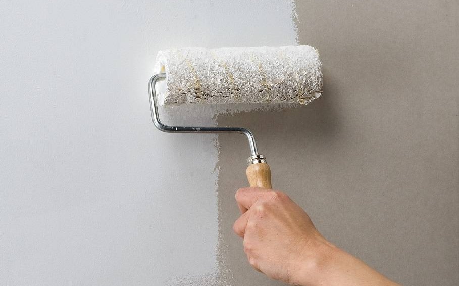 Этот этап начинается, когда зашпатлеванные стены полностью просохли. Для работы понадобятся кисти и валик или пульверизатор. Основную площадь обрабатывают валиком, узкие места – кистями. Начинать лучше от окна комнаты.