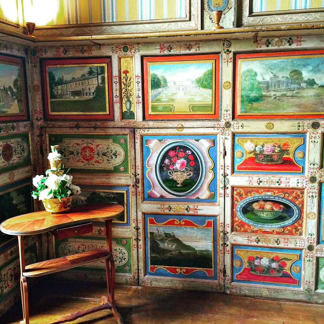 Дизайнеры придумали еще один интересный способ, как скрыть двери. По периметру выкладывают рамку из тисненого картона или полиуретанового плинтуса. Саму конструкцию оклеивают фотообоями. Желательно по обе стороны от изделия оформить такое же панно. Ни одному гостю и в голову не придет, что за одной из картин скрывается дверь, до тех пор, пока хозяин ее не откроет.