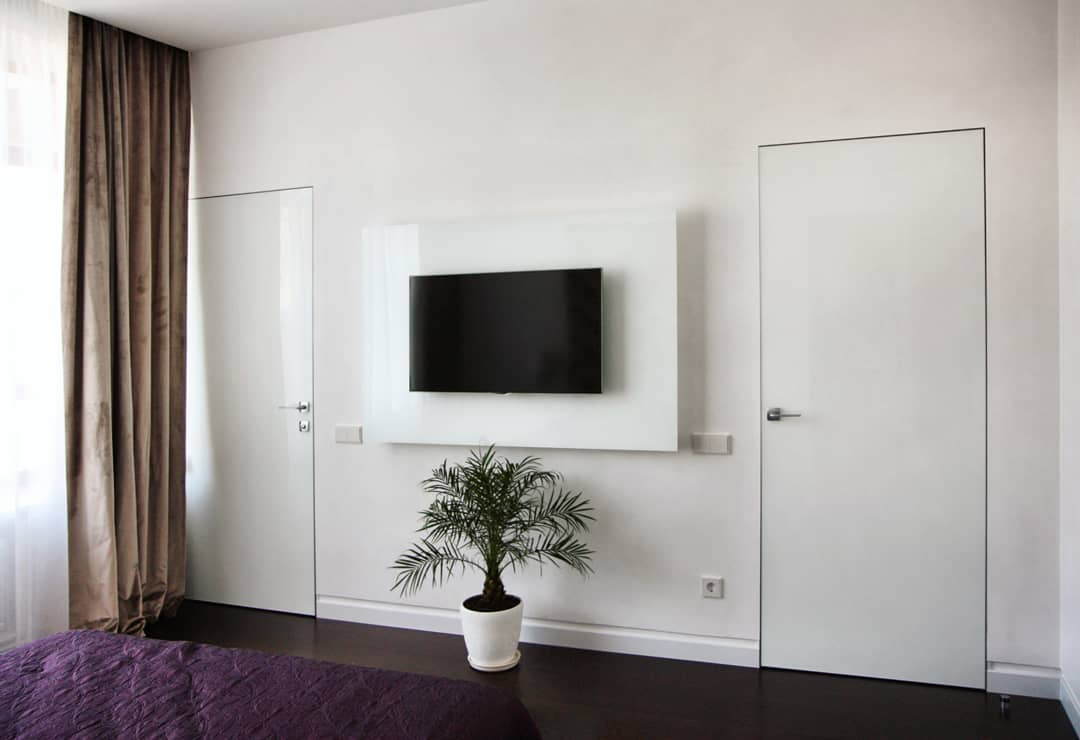 - Экономия. Погонаж зачастую выходит дороже дверного полотна, но в случае со скрытыми дверями его покупать не придется.