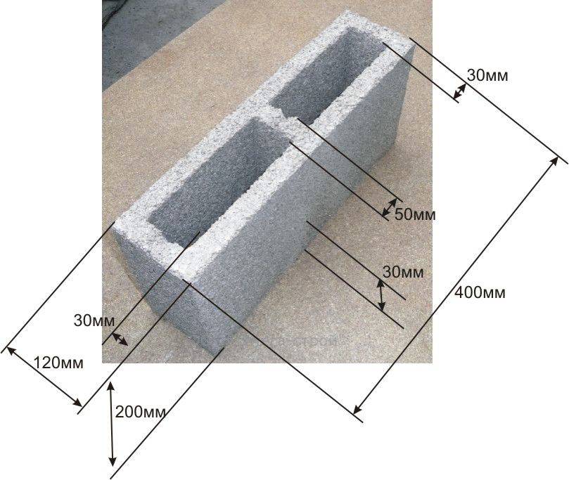 Размеры шлакоблока стандартизированы – 188 х 190 х 390 мм. Каждый блок имеет отверстия. Обычно их 3. Для изготовления строительных элементов используется смесь из цемента марки не ниже М400, доменного шлака и крупнозернистого песка. Нередко добавляются дополнительные наполнители и пластификаторы.