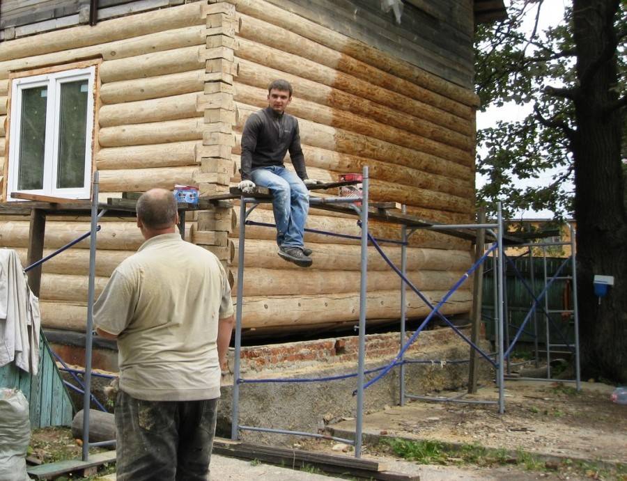 - Подготавливает поверхность к покраске . Любой деревянный материал перед началом строительства проходит обработку антисептиком и антипиреном. Так как большинство антисептиков производятся на водной основе, после намокания и высыхания деревянная стена покрывается ворсом. Шлифовка удаляет ворс и попутно выравнивает стену, некоторые венцы которой могут выступать над поверхностью (иногда на 1-2 мм). Гладкие стены означают упрощение покраски и экономию на материалах, что может стать заметной суммой, если дом большой, а краска — качественная.