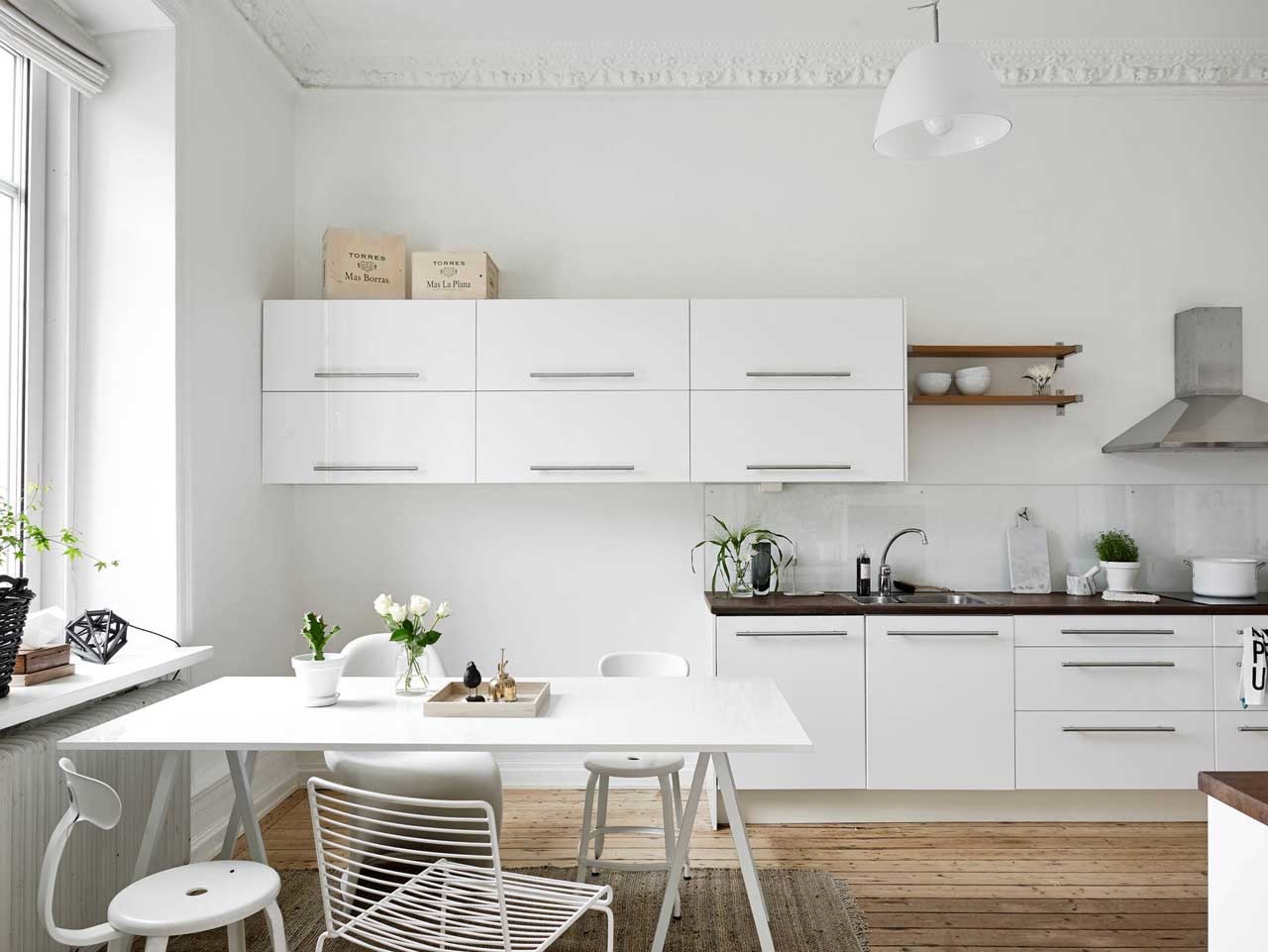 Однако не стоит забывать о прагматичной стороне вопроса: белоснежная кухня может быть только у очень аккуратного человека, регулярно поддерживающего в ней идеальный порядок. На светлых поверхностях будут хорошо заметны даже малейшие следы грязи, и это придутся учитывать. С чем комбинировать белый цвет?