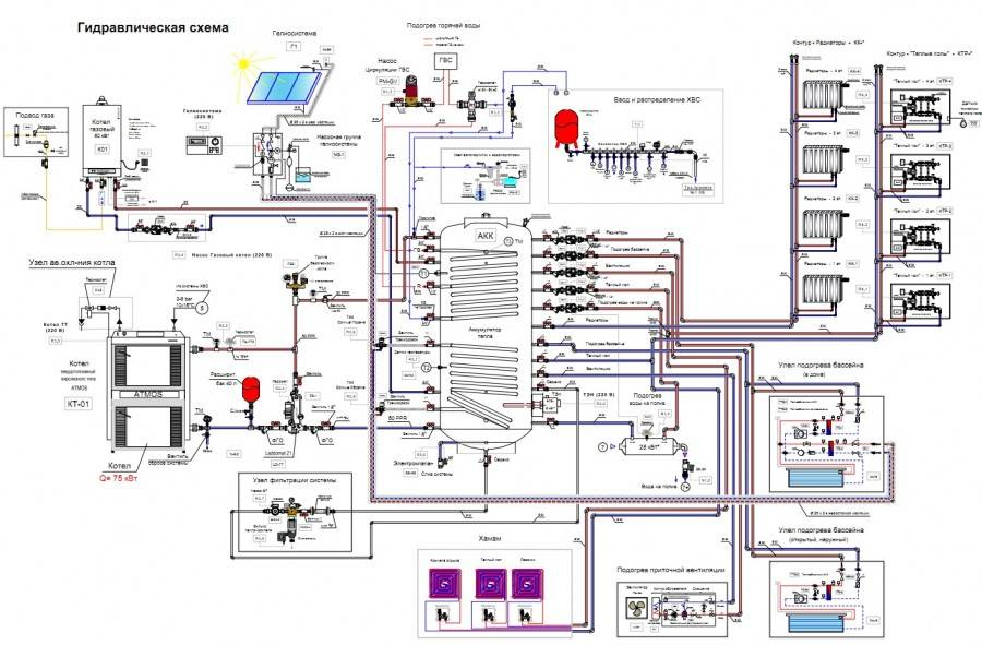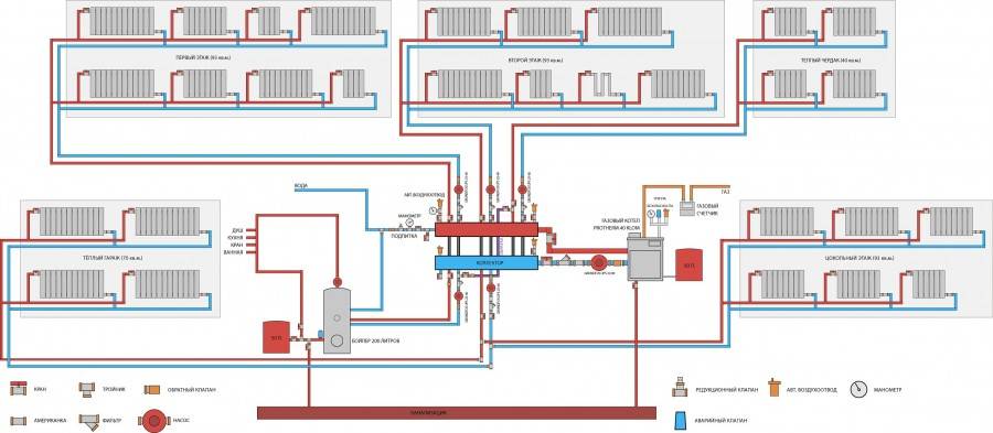 коллектора, которое собирает теплоноситель и распределяет по трубам к батареям.