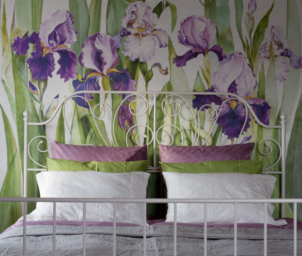 Цветочный принт обоев имеет несколько необычное применение. Его узор должен повторяться в занавесках, обивке мебели, даже технике декупаж. Интересный прием, когда столешница туалетного столика, тумбочки или изголовье повторяет узоры со стен. Для того, чтобы не перенасытить комнату цветами, обои комбинируют. Компаньоном может выступать однотонная краска, дерево или побелка. Даже кирпичная стена. При любом раскладе комната выглядит ухоженной, сразу видно, сколько стараний и труда вкладывалось для ее уютного оформления. Особенно красиво смотрятся текстильные обои.