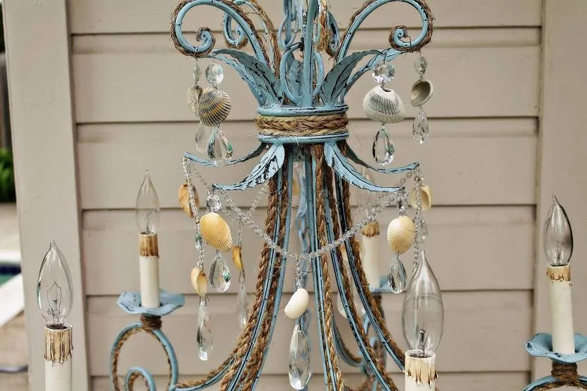 В шебби-шик приветствуется использование обильного количества естественного освещения. Этого добиваются путем использования светлых оттенков мебели, декора и поверхностей. Но в темное время нельзя обойтись без электричества. Для данного стиля выбирают мягкий рассеивающий свет. Его организовывают с помощью центральной потолочной люстры. Источник становится объектом особого внимания. Люстра, изготовленная из металла, с кованными элементами и основными дугами каркаса отлично впишется в старинный интерьер.