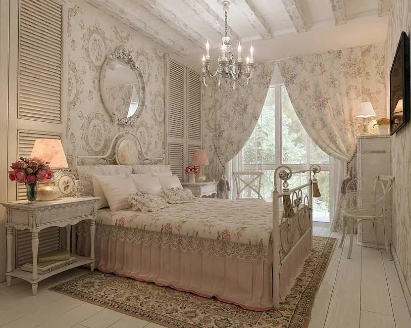 Идеальное место для оформления интерьера в стиле шебби-шик. Романтичная, нежная и уютная спальня подарит только положительные эмоции. Светлая отделка позволяет использовать стиль для оформления интерьера спальни любого размера