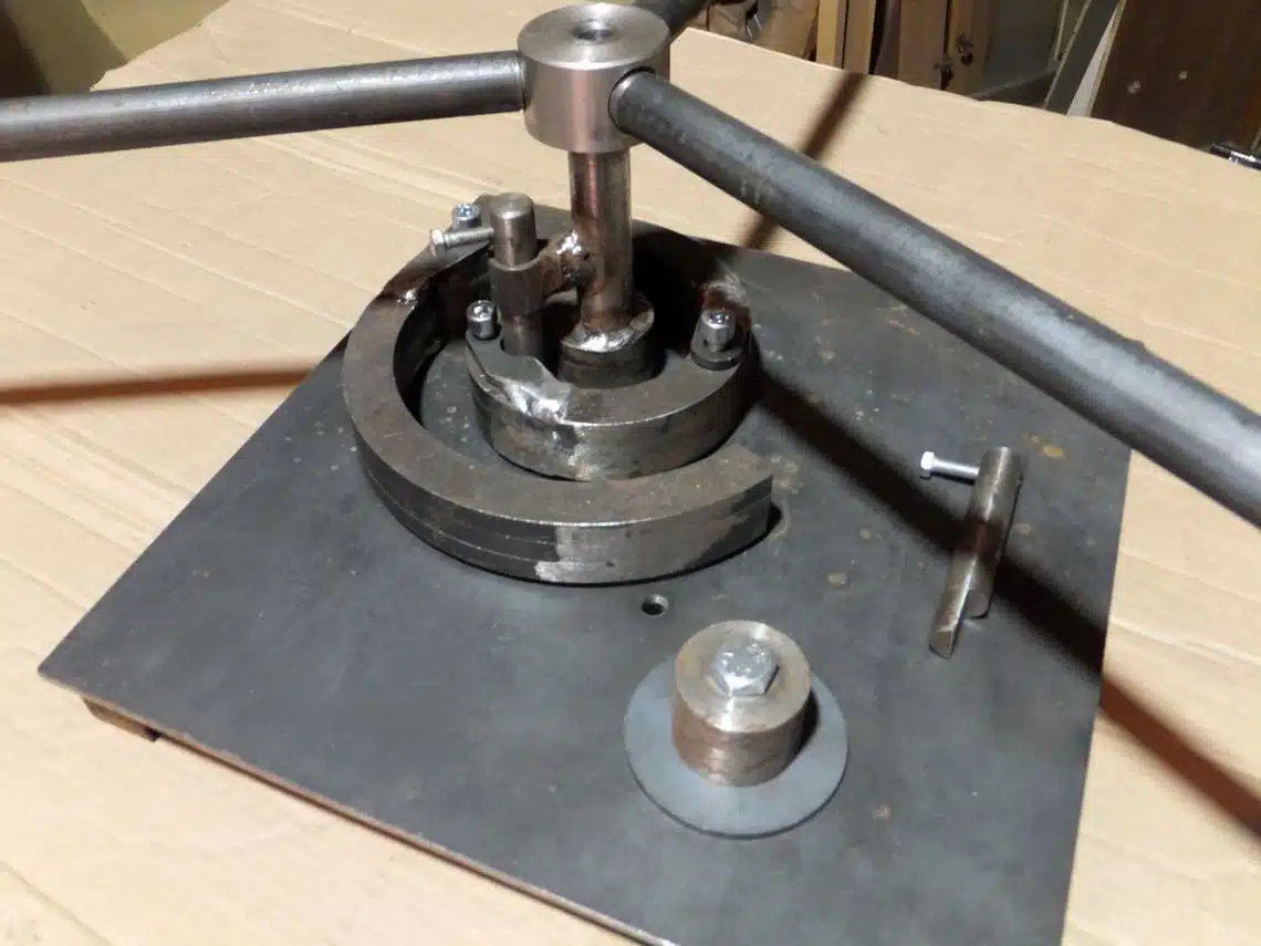 - Механический узел — этот механизм позволяет изгибать металлические прутья в круг. При этом диаметр таких изделий может быть разным. Поэтому в арсенале мастеров такое приспособление незаменимо.